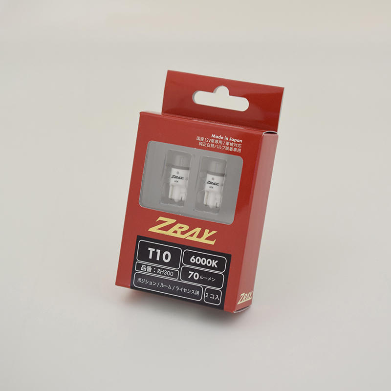 【Nihon Lighting】LED BULB T10 6000K 品番:RH300 取付箇所:ルーム(リア)用 規格:T10 色温度: 6000K ルーメン: 70lm 備考: ポジション/ルーム/ライセンス用 適合情報はこちら 商品ページを見る 仕様 パッケージ重量 25g パッケージサイズ 70X30X115