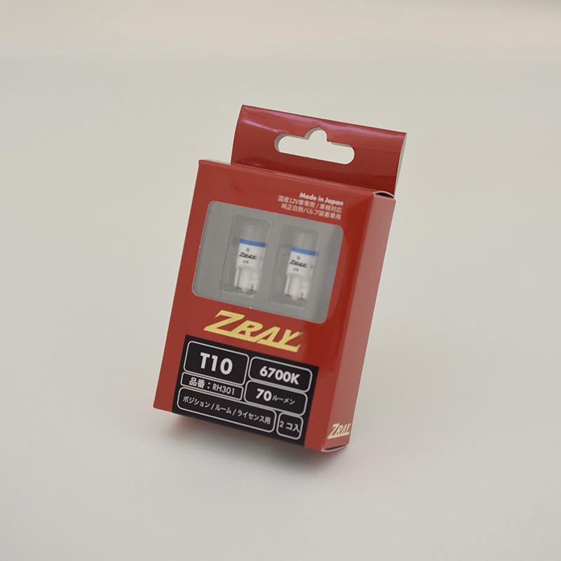 【Nihon Lighting】LED BULB T10 6700K 品番:RH301 取付箇所:ルーム(センター)用 規格:T10 色温度: 6700K ルーメン: 70lm 備考: ポジション/ルーム/ライセンス用 適合情報はこちら 商品ページを見る 仕様 パッケージ重量 25g パッケージサイズ 70X30X115
